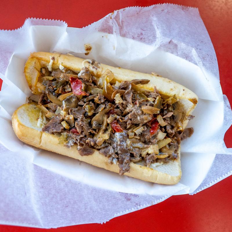 Shave Philly Beef. Peppers, Onions and Provolone Cheese on a 8 inch Hoagie Rool