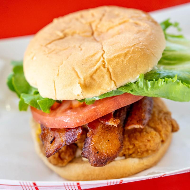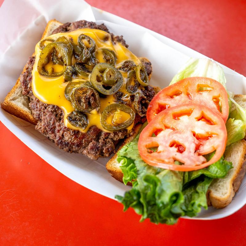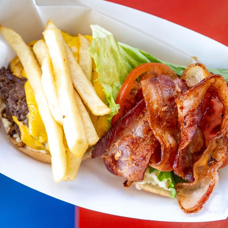 4oz patty, With mayo, lettuce, tomato grilled onions pickles toped with 3 fries and special seasoning